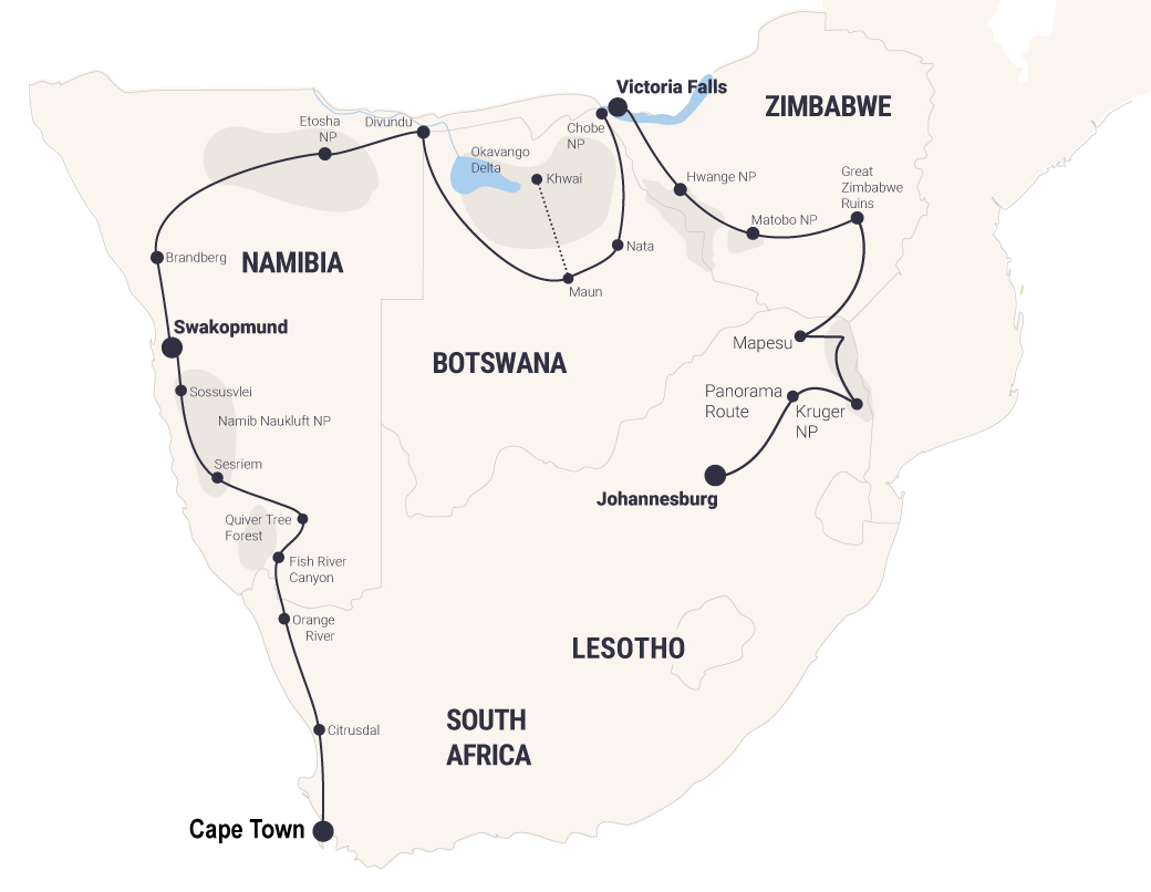 South Africa, Namibia, Botswana, Zimbabwe, Mozambique