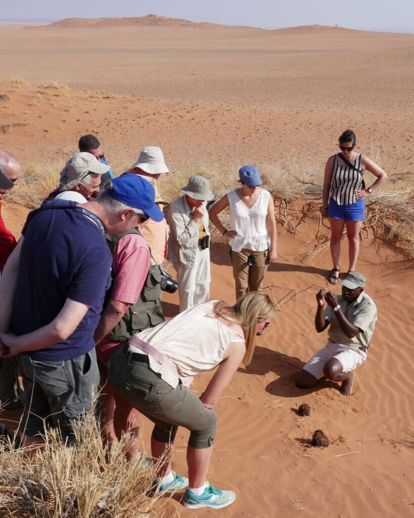 It’s a wonder anything survives in the vast, dry Namib Desert. At first glance, the region appears unchanging and inhospitable, yet our guided desert walk reveals a thriving world hidden in the sand. Travellers learn about the smallest desert-adapted creatures — beetles, chameleons, geckos — and the remarkable survival skills of local tribes who navigate the dunes. Alongside quirky stories and regional folklore, this desert walk gives visitors a new appreciation for Namibia’s ancient landscapes and unique biodiversity.