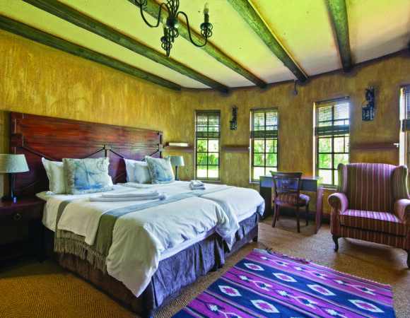 We drift westward into Namibia’s northeast, where the Kavango River cradles our next destination and a morning boat cruise awaits. Afterwards, we set off for Etosha National Park, where bone-dry salt pans gleam under the sun and creatures from near and far congregate around pools of life-giving water.
