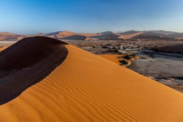 Today we will rise early for our drive to the Namib-Naukluft National Park. We will enter the park just after sunrise and travel through to the famous Dune 45. A brisk climb up Dune 45 offers us the perfect vantage point to marvel at the changing colours of the desert. Once satisfied we descend this famous dune and enjoy a hearty breakfast before catching a 4×4 transfer into Sossusvlei, here we will spend time on foot visiting the pans at Sossusvlei and Deadvlei. Our desert exploration concludes with a visit to the Sesriem Canyon. Tonight we empty the red sand from our shoes and spend the night under the magnificent desert stars, knowing that we have spent a full-day enjoying the wonders of this harsh land.