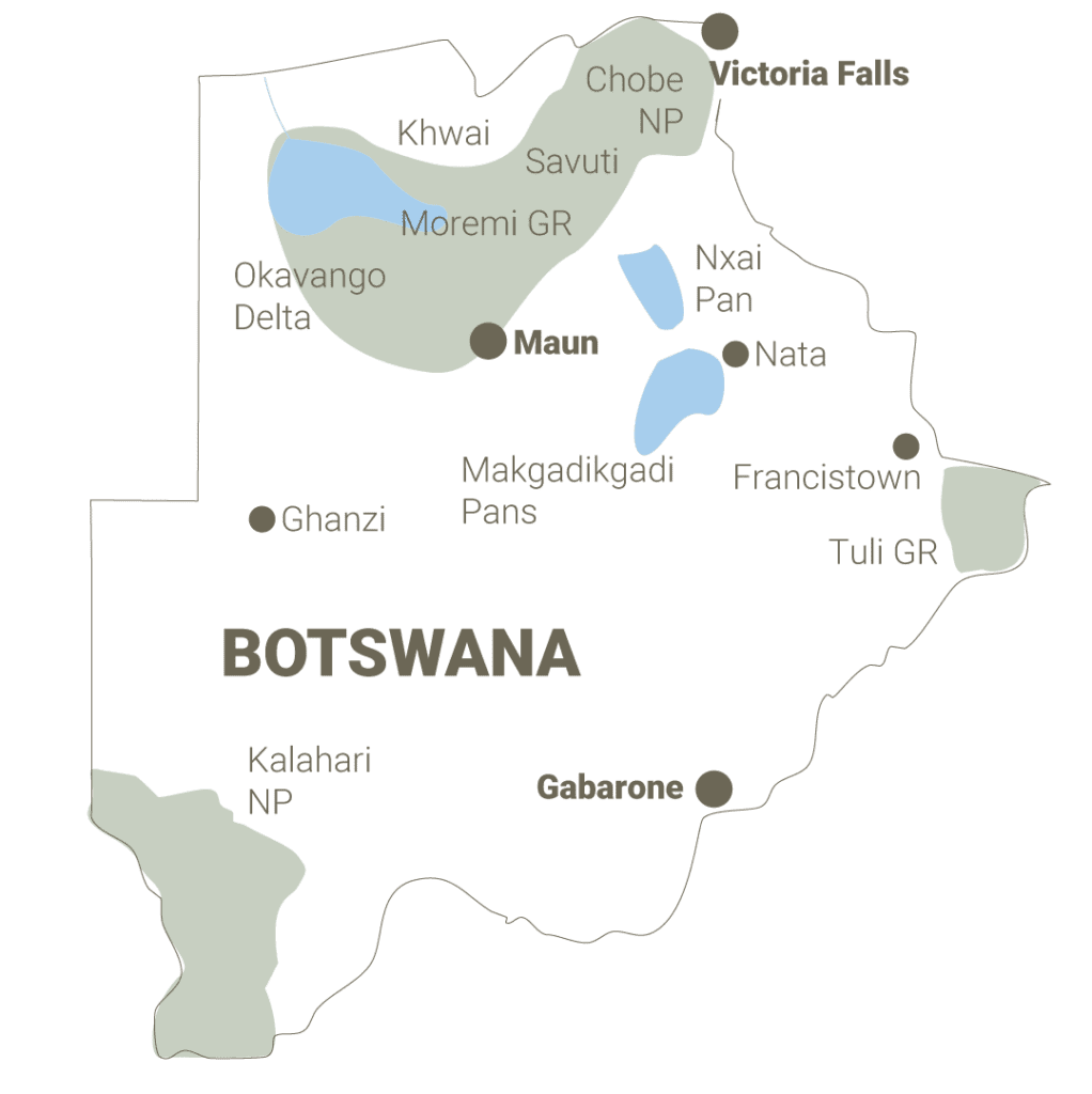 After a final breakfast in the wild, say farewell to the Khwai team and transfer back to Maun for your onward journey. Reflect on your adventure through Namibia and Botswana—from the mighty Zambezi to the Okavango’s serene waterways and the game-rich Khwai plains. You depart with lifelong memories of stunning sunsets, tranquil rivers, and unforgettable wildlife encounters. Meals: Bed & Breakfast