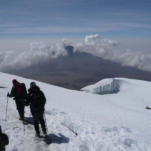 After a cup of hot tea and a light snack, the climb begins at midnight. By torchlight, you will climb the screes of Kibo. After 5 to 7 hours of ascending in the dark you will arrive at Stella Point (5730m), the crater rim of Mount Kilimanjaro. Another 1 to 2 hours climb along the crater ridge will lead you to Uhuru Peak. Here you will see Kilimanjaro in all its glory, enjoying the 360 degree view over the landscape below as the sun rises. You are now standing on the “Roof of Africa”. The simple descent runs almost along the same route and shortly before midday, you should arrive at Barafu Camp where the porters and the cook will be waiting for you. After a warm meal and a well-deserved break of approximately 1 to 2 hours, you will be on your way down to Mweka Camp where supper and a well-earned rest await you.