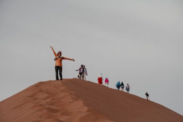 Full-day guided exploration of Sossusvlei, Deadvlei, towering dunes, and Sesriem Canyon. Exclusive picnic lunch among the dunes before returning late afternoon. All meals included.