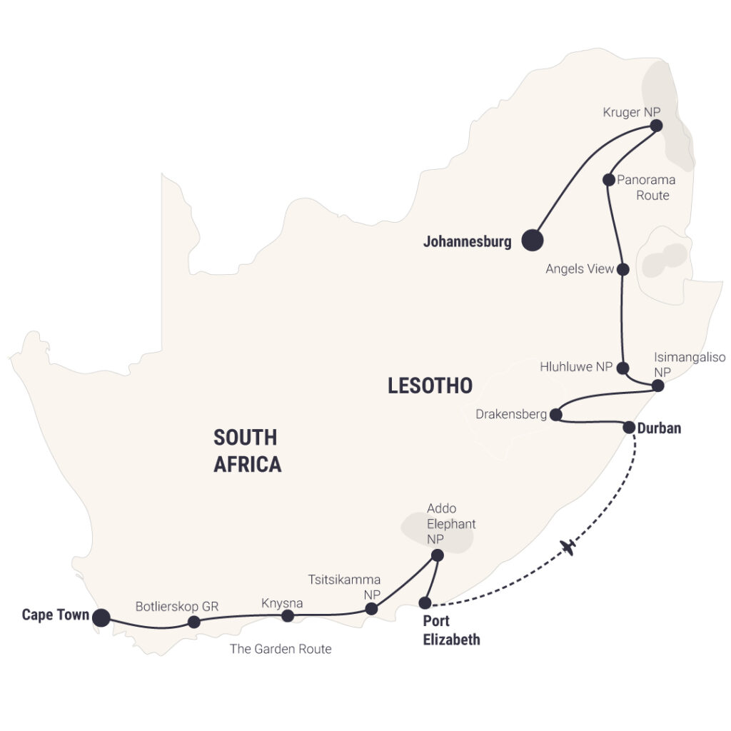 Soak in the sun on this Namibian route including rhino tracking at Waterberg Plateau, safaris in the astonishing Etosha, and scenic drives in Damaraland. A deeper dive into the desert reveals Erongo sundowner outing, Swakopmund’s coastal charm, and Sossusvlei with an excellent lunch amongst the dunes. Recline in luxury on this amber adventure.