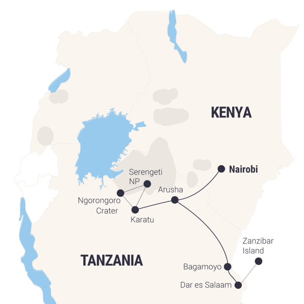 Leaving behind the bustle of Nairobi we travel south to the Tanzanian border. After completing border formalities we continue to the busy town of Arusha, our base for the night. Northern Tanzania is home to the Serengeti, Ngorongoro and Kilimanjaro.