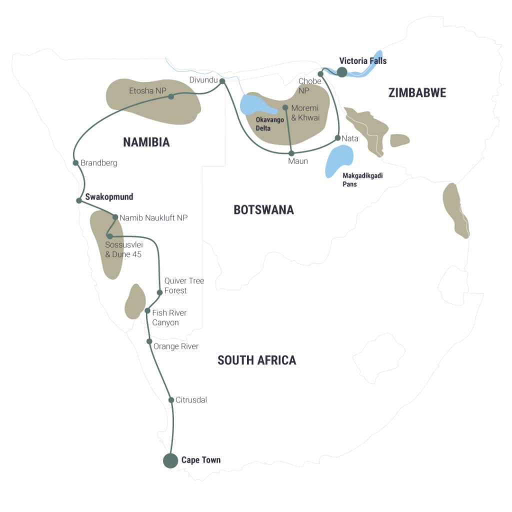 Our top tour is a spectacular 20-days of contrasts, from the arid Namib Desert to the wetlands of the Okavango Delta to Victoria Fall’s roar, this is a celebration of Southern Africa’s natural wonders.